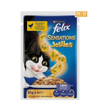 بورينا فيليكس سينسيشن طعام القطط بنكهة الدجاج والسبانخ 85 جرام × 12 قطعة
