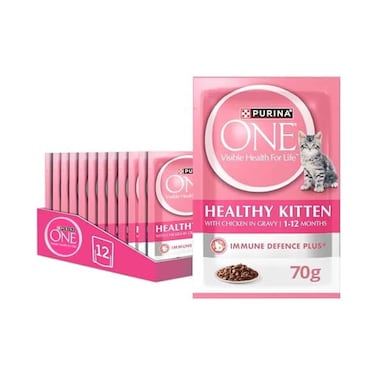 طعام القطط الرطب بورينا ون للقطط الصغيرة الصحية بالدجاج 70 غ × 12 قطعة