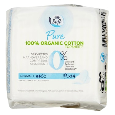 كارفور حفاضات صحية قطنية ناعمة نقية، 14 قطعة