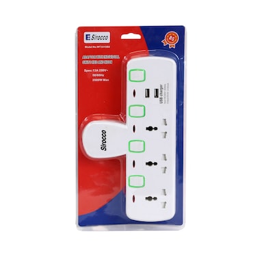 Sirocco 3 Way Plug Socket with 2 USB