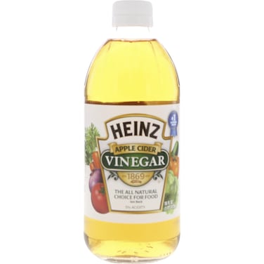 - Bring home the Heinz Apple Cider Vinegar and enhance the taste of your food. It is made with high-quality apples and crystal clear water. Thanks to the 5 percent acidity of this entirely kosher vinegar, it is manufactured to add hints of a subtle and lingering flavor to salads, marinades, and such other recipes.