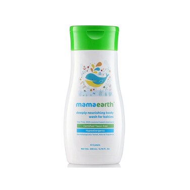 - Mamaearth Deeply Nourishing Body Wash For Babies, 200ml Hi! I am mamaearths bodywash. For a baby, bath time is both fun and relaxing. But dont be fooled, there is some real cleaning going on in here.