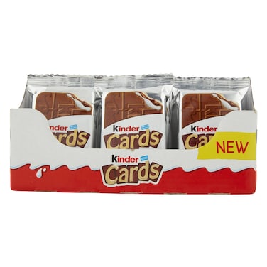 - Kinder Cards is a waffle specialty consisting of milk cream and cocoa cream. The two crunchy wafers enclose the creamy milk and cocoa filling. Kinder Cards thin cookie with a chocolate bar on the top, inside filled with the cream and cocoa. This product may contain traces of milk and nuts.