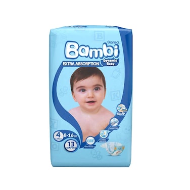 Sanita Bambi Baby Diapers Large Size 4, 13 Count, 8-16kg