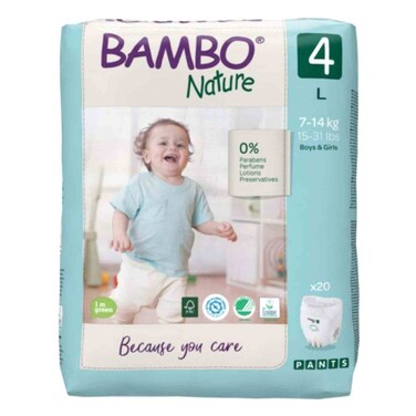 Bambo Nature Pants Diapers 7-14 Kg L Size 4 20 Count