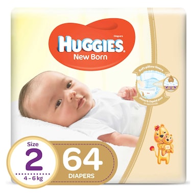 Huggies Diapers New Born Size 2 4-6kg 64 Count