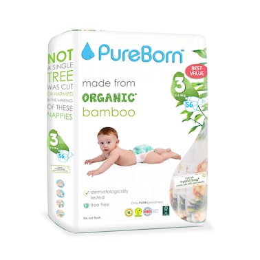Pure Born Organic Bamboo Baby Diapers No.3 56's