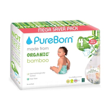 PureBorn Organic Bamboo Diaper Size 4 7-12kg 24 Count