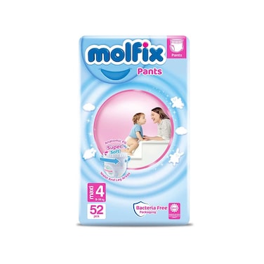 Molfix Comfortable Baby Diaper Maxi Size 4, 52 Count, 9-14kg