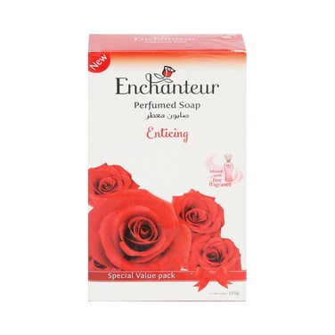 - Enchanteur enticing soap makes you revel in its luxurious feel while gentle cleansing your skin, leaving it soft and clean.
