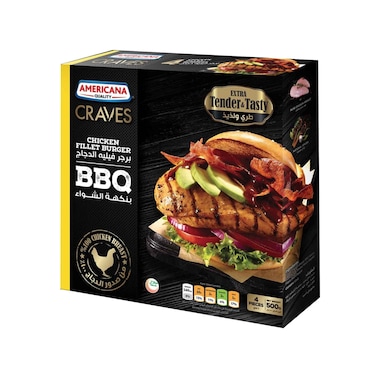 • Craves Chicken Fillet Burger by Americana made of 100% Halal Chicken breast marinated with natural BBQ spices giving you the premium restaurant experience so you can indulge at-home with your loved ones. Our superior tender juicy Chicken Burger Fillet is your ultimate choice for your upcoming family friends BBQ gatherings.