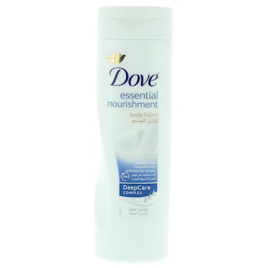 - Dove Essential Nourishment Body Lotion not only moisturizes the surface of your skin, but also delivers deep nourishment for long lasting beautiful soft skin. Dermatologically tested. surface layers of skin