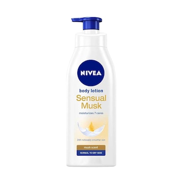 - Nivea Sensual Musk Body Lotion is a unique formula that gives your skin advanced moisturization with an intense and long-lasting musk fragrance. </br> Formulated with Hydra IQ moisturizing technology, Nivea Sensual Musk Body Lotion provides a steady supply of moisture to your skin all day long while enveloping your senses in a warm, sensual musk fragrance. </br> It leaves your skin feeling comfortable, soft and smooth. Nivea, a hundred years of skincare for life!