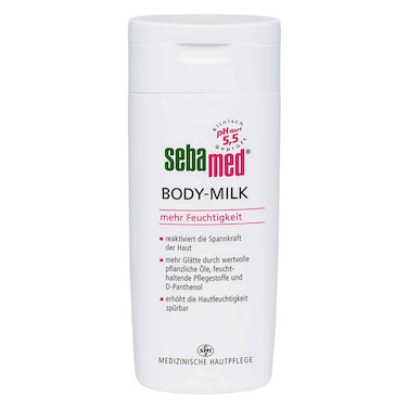 - The sebamed Body Milk reactivates the natural tension of the skin and gives it more smoothness through valuable vegetable oils, moisturizing care products and D panthenol so that the skin moisture is noticeably increased.