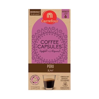 Maf Carrefour Peru Medium Roast Intensity 6 Coffee 10 Capsules