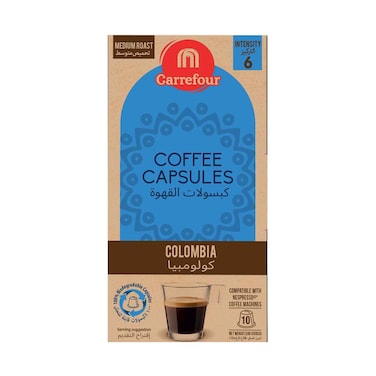 Maf Carrefour Colombia Medium Roast Intensity 6 Coffee 10 Capsules