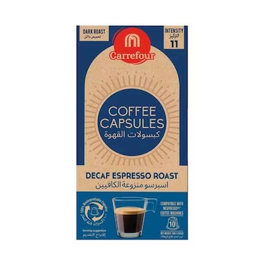 Maf Carrefour Decaf Espresso Dark Roast Intensity 11 Coffee 10 Capsules