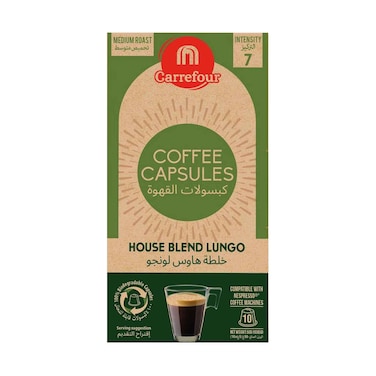 Maf Carrefour House Blend Lungo Medium Roast Intensity 7 Coffee 10 Capsules