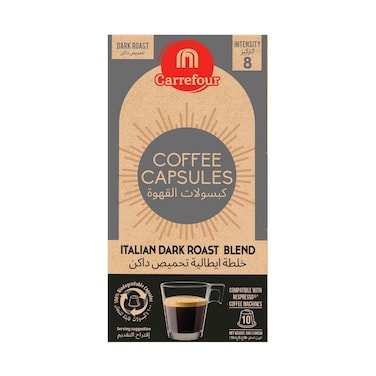 Maf Carrefour Italian Dark Roast Blend Dark Roast Intensity 8 Coffee 10 Capsules