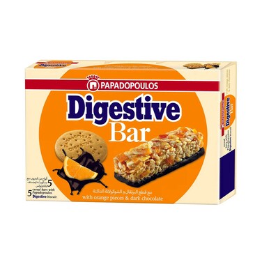 Papadopoulos Digestive Bar With Orange Pieces & Dark Chocolate 28gx5 Pieces