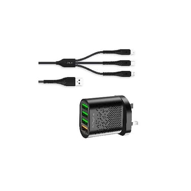 Platinum Quad Wall 3in1 Charger Type-C, USB, Lightning - Black