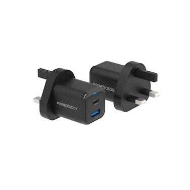 Powerology 35W PD QC 1xUSB-C 35W and 1xUSB-A 18W GaN Charger UK - Black