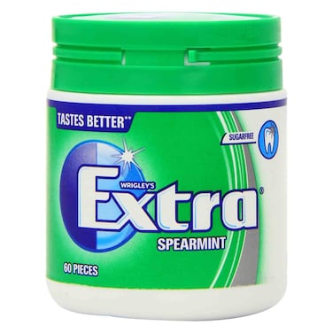 - This Wrigley's extra chewing gum sugarfree spearmint gives you clean and healthy teeth and lets you focus on yourself, while its smooth and refreshing flavor gives you the readiness to make the most of your moment and emerge stronger than who you were.
