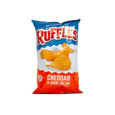 - Ruffles cheddar & sour cream chips have bold, thick and deep ridges to hold more of the real cheddar cheese & sour cream flavor you love. They're strong enough to withstand any dip. These single serve bags are not only convenient but they're also just what you need to recharge and curb your hunger in the middle of the day.