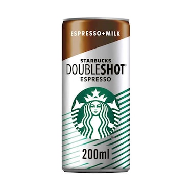 • Starbucks Doubleshot® Espresso iced coffee is inspired by a true Starbucks coffeehouse original. It's simply made with two bold shots of our signature espresso coffee and smooth creamy milk. Get going on the double with this chilled coffee whenever you need a quick uplift; a perfect way to kick start your day or to keep you going through a busy day. To enjoy Starbucks Doubleshot® Espresso iced coffee at its best gently serve it chilled and gently shake to wake the flavours, and for a lighter way to get your chilled coffee kick, why not try Starbucks Doubleshot® Espresso No Added Sugar?Starbucks is completely passionate about coffee, going to great lengths to get the best taste in every cup and achieve the best coffee flavour. Starbucks® chilled coffees are made with 100% arabica coffee and our commitment to ethical coffee sourcing remains a priority through our Coffee and Farmer Equity (C.A.F.E) Practices program. C.A.F.E Practices has been the cornerstone of our ethical sourcing approach to buying and selling coffee since 2004. Developed in collaboration with Conservation International, C.A.F.E Practices is a verification program that measures farms against economic, social and environmental criteria, all designed to promote transparent profitable and sustainable coffee growing practices while also protecting the well-being of coffee farmers and workers, their families and their communities.