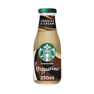 • • Starbucks Frappuccino® Cookies & Cream iced coffee is inspired by a true Starbucks coffeehouse original. </br> • A cookie and coffee break in one, simply made with our signature roast esoresso coffee and creamy milk. </br> • An indulgent chilled coffee blend, a perfect treat which can be consumed anywhere: on the go or at home. </br> • To enjoy our delicious Starbucks Frappuccino® Cookies & Cream iced coffee at its best, serve it chilled or over the ice and gently shake to wake the flavours</br> • Be sure to look out for our other indulgent Starbucks Frappuccino® chilled coffee flavours: Mocha, Coffee, Caramel. </br> • Starbucks® chilled coffees are made with 100% arabica coffee and verified as responsibly sourced by Coffee and Farmer Equity (C.A.F.E.) Practices.