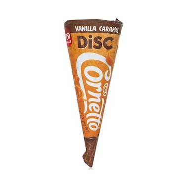 - ake a sweet journey with Cornetto Disc Ice Cream Vanilla Caramel! Experience the iconic ice cream in a cone that's synonymous with creamy and crunchy delight. It's more than a snack