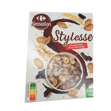 - Carrefour Rice White Flakes Dark Chocolate Cereal is crunchy, munchy with the blend of chocolatey affair. Its for those, who loves chocolate at every time. This power packed Rice White Flakes Dark Chocolate cereal is a good source of fiber and can be enjoyed with milk. Crispy cereal is great to eat with hot milk or hot water for children or kids for breakfast. It has extreme nourishing power and full of vitamin that boost the energy level to start the day.