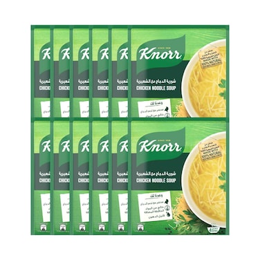 Knorr Classic, Packet Soup, For Lunch, Dinner or Snacks, Chicken Noodle, Low in Fat, No Added Preservatives, 60g Pack of 12