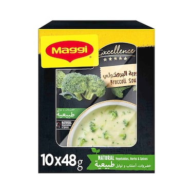 • This ready-to-made soup is the best way to deal with your hunger pangs. Excellence Broccoli Soup has high quality broccoli pieces that satisfy your taste buds each time you enjoy a warm bowl of it. Tender bits of nutritious broccoli in a thick creamy broth. Maggi Excellence Broccoli Soup is a healthy treat, rich in vitamins and minerals that will have you coming back for more.