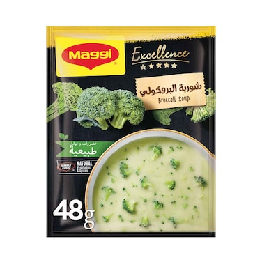 - This ready-to-made soup is the best way to deal with your hunger pangs. Excellence Broccoli Soup has high quality broccoli pieces that satisfy your taste buds each time you enjoy a warm bowl of it. Tender bits of nutritious broccoli in a thick creamy broth. Maggi Excellence Broccoli Soup is a healthy treat, rich in vitamins and minerals that will have you coming back for more.