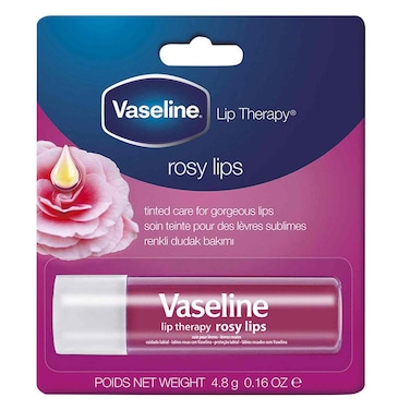 - Vaseline Lip Therapy Rosy Lips Stick, gives your lips a gorgeous rosy glow while providing a surge of moisture with sweet almond and rose oil no need for lippy.. Vitamin E helps to care for healthier lips, Petroleum Jelly locks in moisture, Almond and Rose Oil helps to keep your lips soft and smooth.