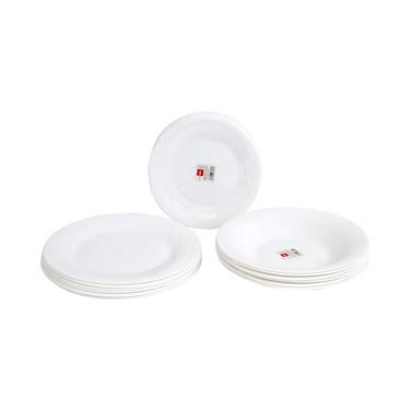 Cok Opal Elba Glass Dinner Plates Set White 18pcs