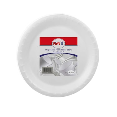 First1 Disposable Foam Plates 10inch White 50Pcs