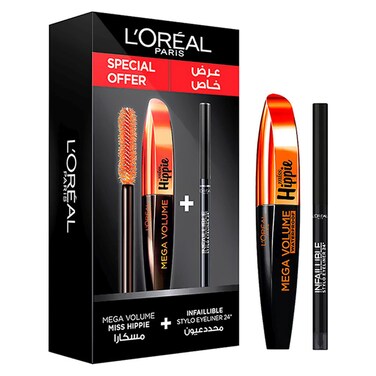 L'Oreal Paris Mega Volume Miss Hippie Mascara With Infaillible Stylo Eyeliner Black