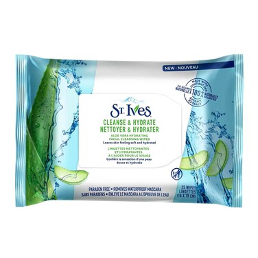 St Ives Aloe Vera Hydrating Facial Cleansing Wipes x Pack of 25
