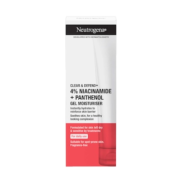 - Clear & Defend+ Gel Moisturiser with Niacinamide & Panthenol hydrates instantly to strengthen your skin's barrier. Absorbed quickly into your skin, it replenishes moisture and prevents dryness.