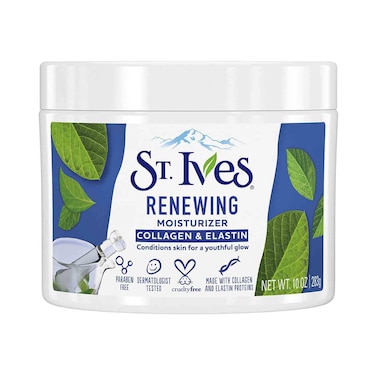 • ● St.Ives moisturizer, with collagen elastin proteins, hydrates for visibly softer, smoother skin