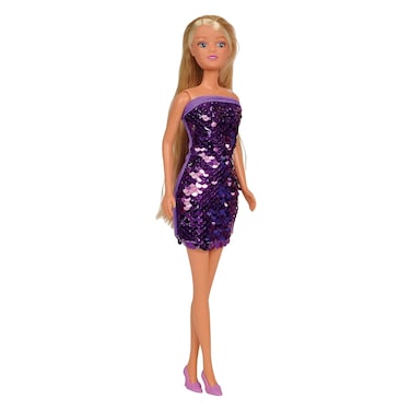 • Swap it! Steffi wears a breath-taking sequin dress with swap effect. If you run your hands over the sequins, they change their color. Steffi can therefore wear two looks with just one dress. The fashionista combines great high heels with both dresses.
