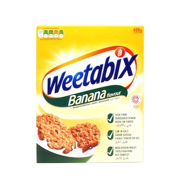 • Weetabix Banana contains all the wholesome whole grain goodness of Weetabix Original except that each biscuit is flavored with Banana. A fruity flavor for you and your family to enjoy at breakfast time.