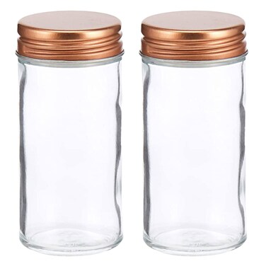 Harmony Glass Spice Jar 90ml 2 Pieces - Clear Glass Rose Gold Lid