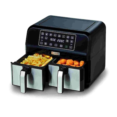 - 2 INDEPENDENT BASKETS: The XXXL version of the original Air Fryer with 2 independent Baskets, the XXXL air fryer lets you Cook 2 Foods, 2 ways, at the Same time, Eliminating back-to-back Cooking like a Traditional Single-Basket Air Fryer Now in larger SMART FINISH & MATCH COOK: Dual Zone Technology allows you to choose between the Smart Finish feature, which unlocks cooking 2 foods 2 ways that finish at the same time, and the Match Cook Feature, which Easily Copies Settings Across Zones for full 4L X 4L Capacity Meals BENEFITS: It Fries with a Tablespoon of Oil, Even Heat Distribution. Max Crispy Function with Two Plates for Extra Crispy and Golden Dishes TOUCH SCREEN DISPLAY: with 8 Cooking Functions and Adjustable Time and Temperature35-200° wide Adjustable Temperature and Dehydrate Function up to 24 Hours SYNC FUNCTION: to Finish Cooking at the same time when Food have Different Cooking Time and Non-Stick Basket Capacity 4L 1.7Kg (Total 8L 3.4 Kg)