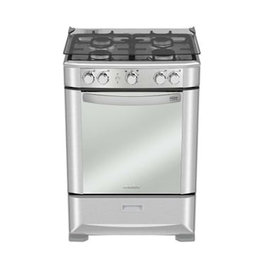 - MABE free standing Gas cooker, 60cm, 4 burners, Glass lid, 66.5ltr oven capacity, Grill & Rotisserie, Stainless steel, Electronic ignition burners, Oven Light, Cast Iron Grates, H925 x W600 x D560mm, Made in Ecuador