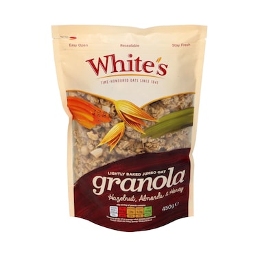 - We're always thinking about how to make the most of our precious White's oats. By lightly baking them in honey with pumpkin seeds, sunflower seeds and golden linseed and then adding almonds and hazelnuts we've created a granola of sublime taste and texture.For generations, oats have not only been our livelihood but our love. We know our farmers by name and sometimes their grandfathers, too. Together, over time, we've perfected our slow-grown, plumper oats. We sort the best ones, twice-steam and slowly kiln them so all that's left for you to do is take a moment to enjoy.