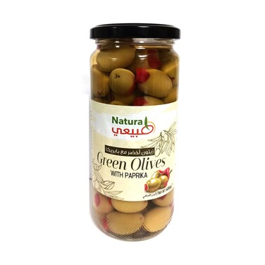 Natural Green Olives With Paprika 485g