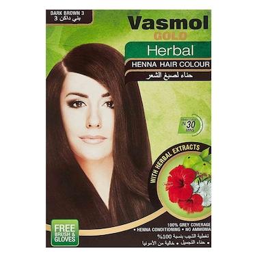 Vasmol Gold Herbal Henna Hair Colour 3 Dark Brown 60g